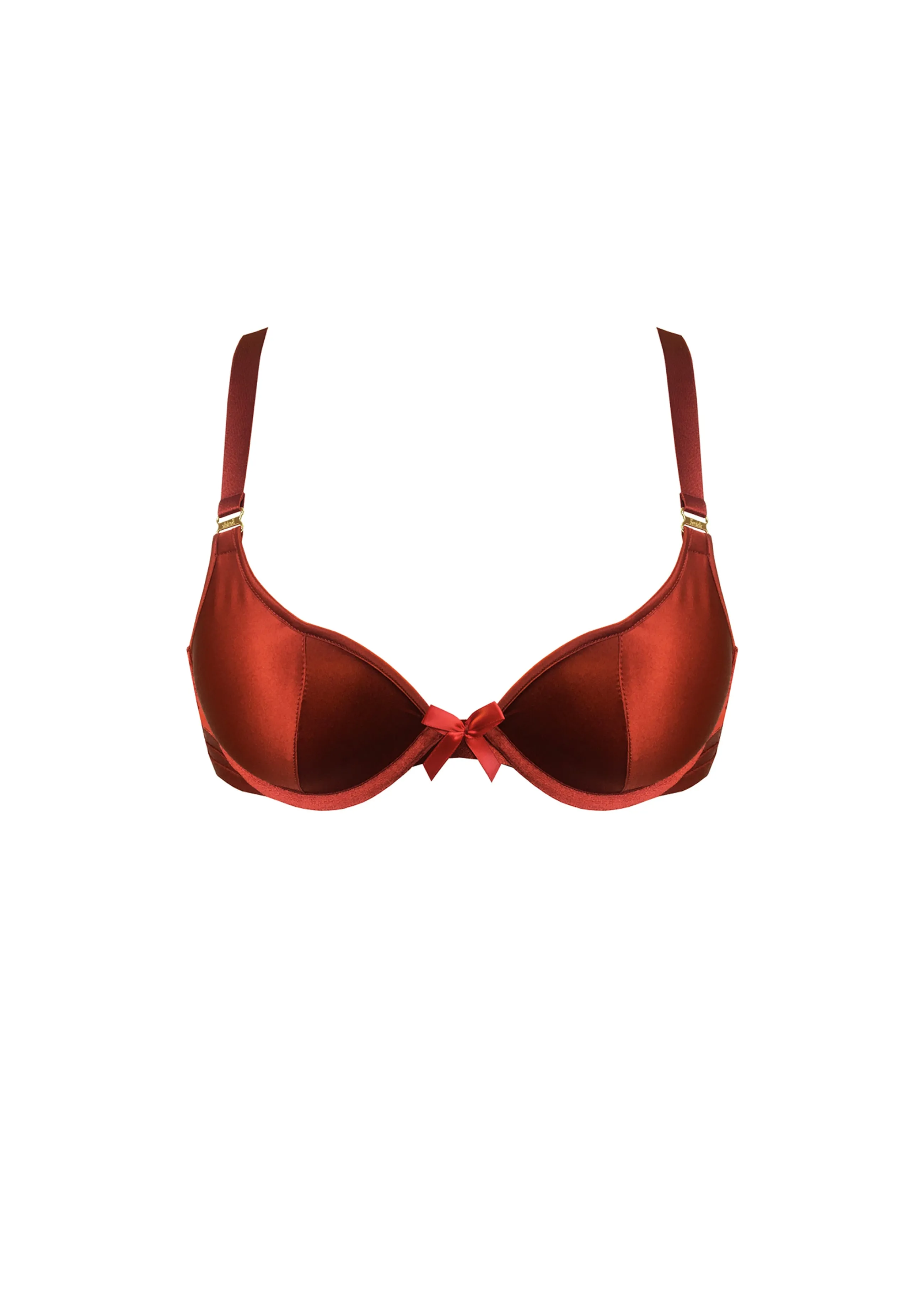 A classic push-up bra, reimagined. Featuring moulded cups covered in smooth silk satin and fully adjustable back straps secured with a hook & eye fastening at the centre back.