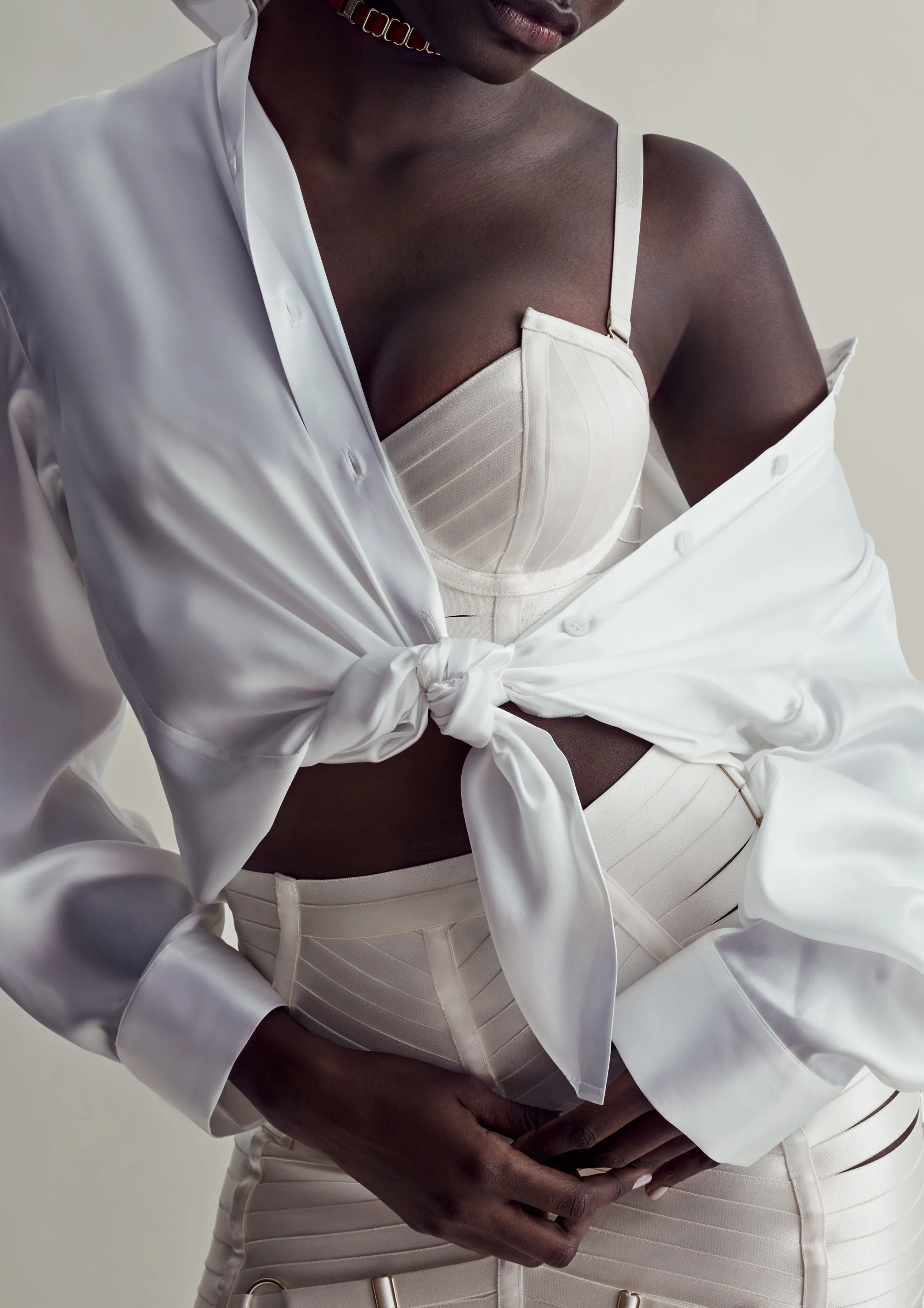 A true Bordelle bodice bra, inspired by our coveted Angela Girdle Dress, and made up almost entirely of luxury satin ela…