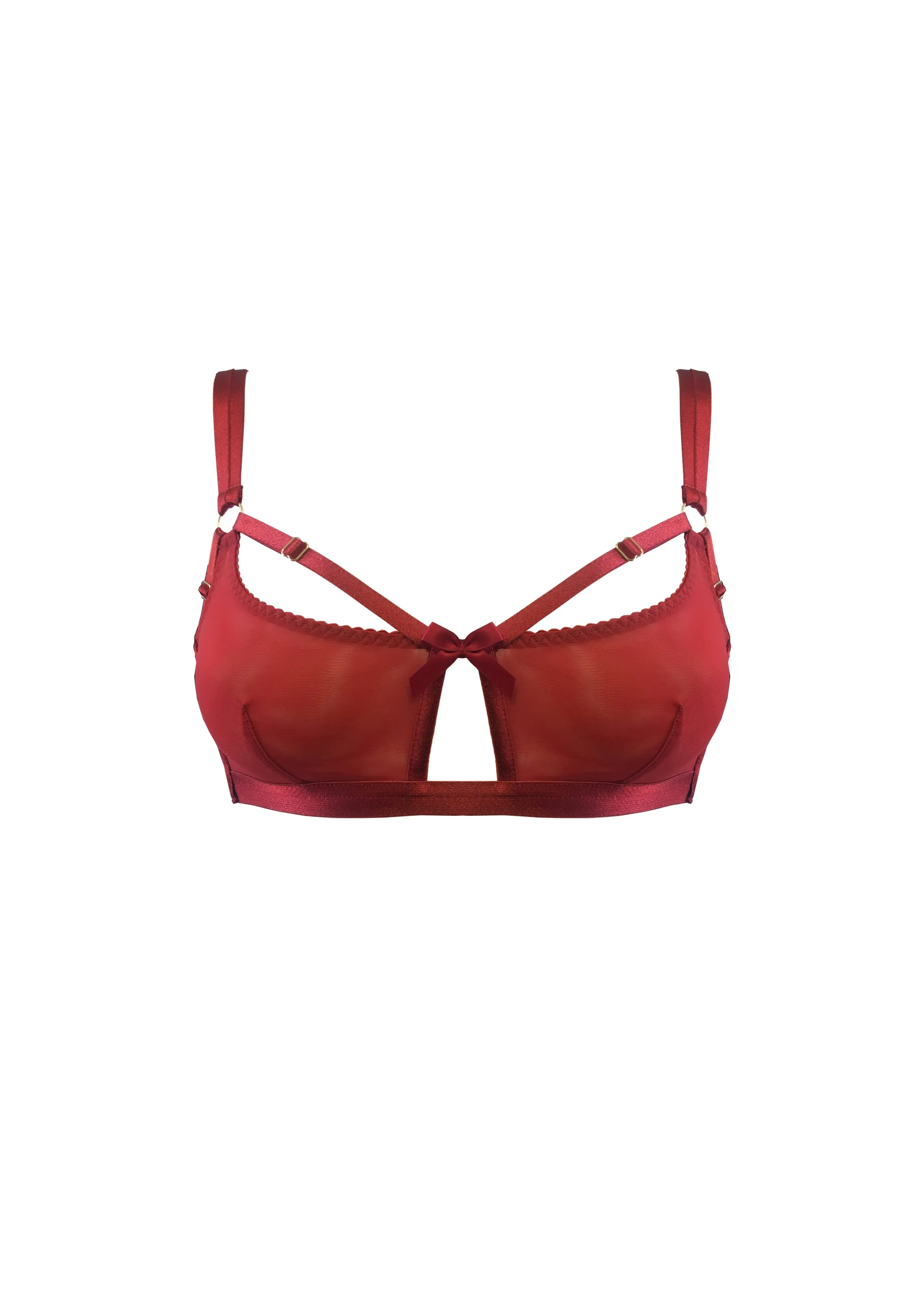 The ideal everyday Bordelle piece, crafted from soft stretch mesh with adjustable satin elastic strapping and a peep detail at the centre front.