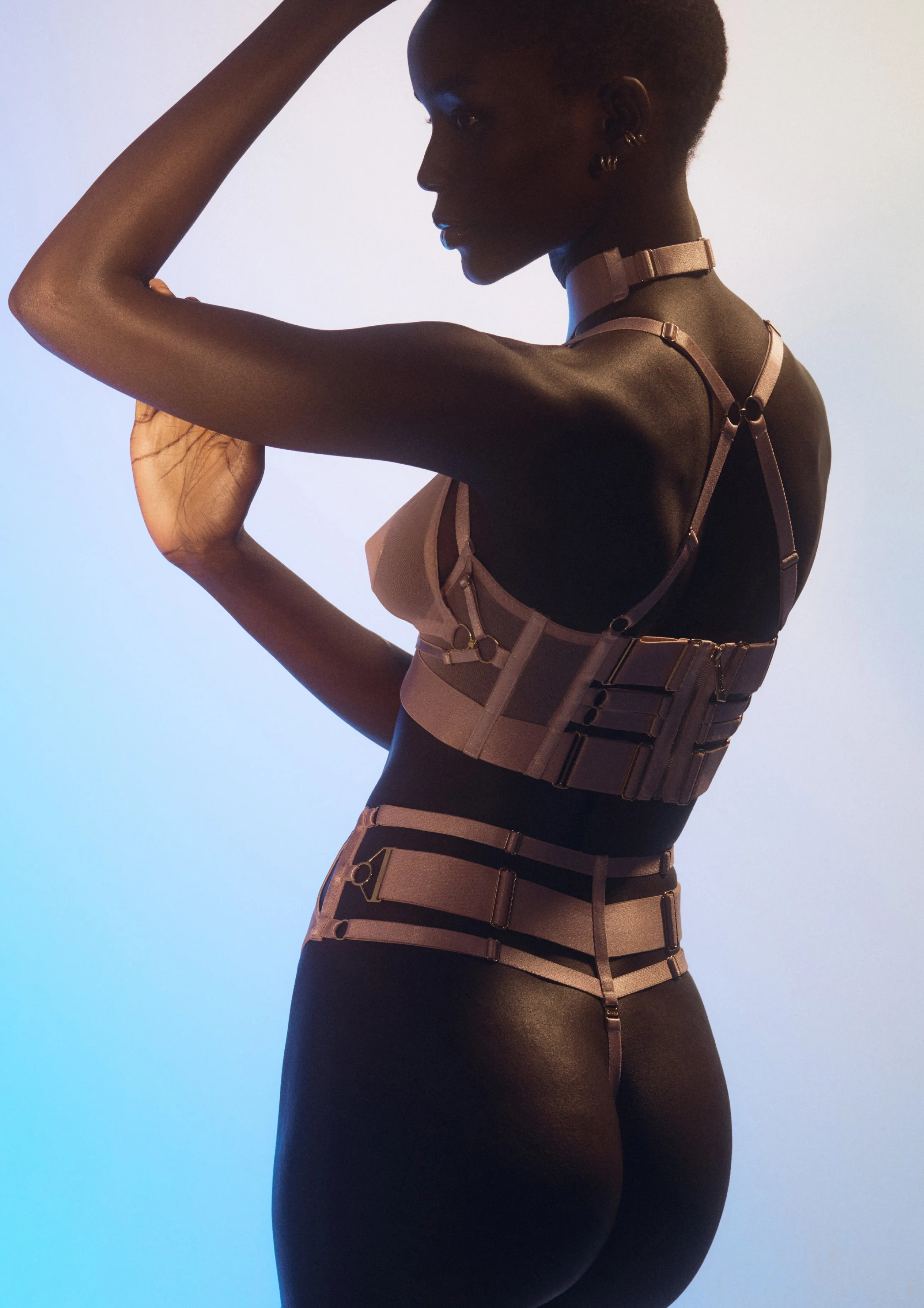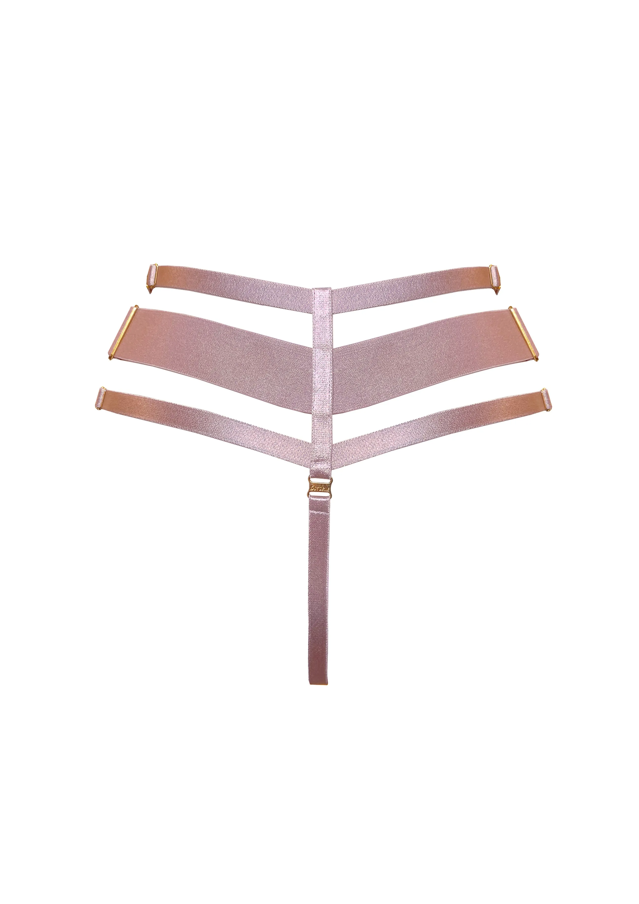 - Signature satin and wide band elastic strapping in delicate Rose