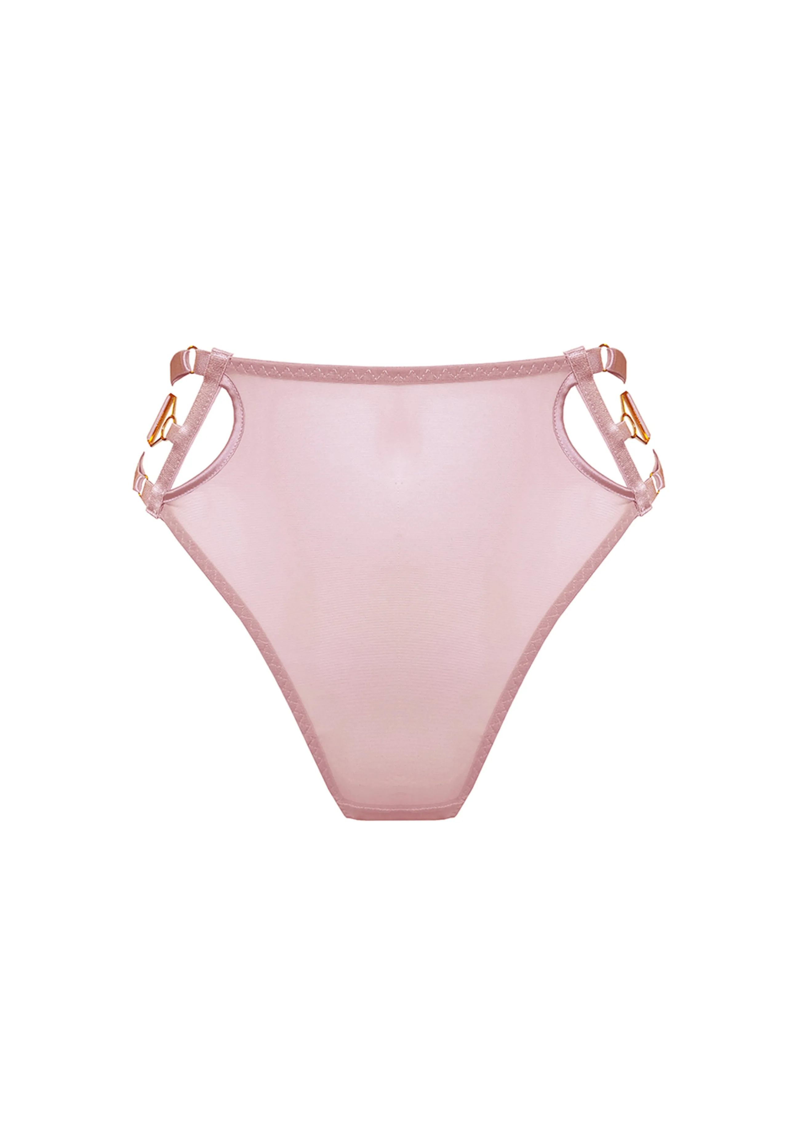 Elongate your figure in the Kora High Waist Thong. Featuring a striking high leg design, eye-catching side details and 24k gold plated components. Wear with the Kora Balconette Wire Bra for the perfect look.