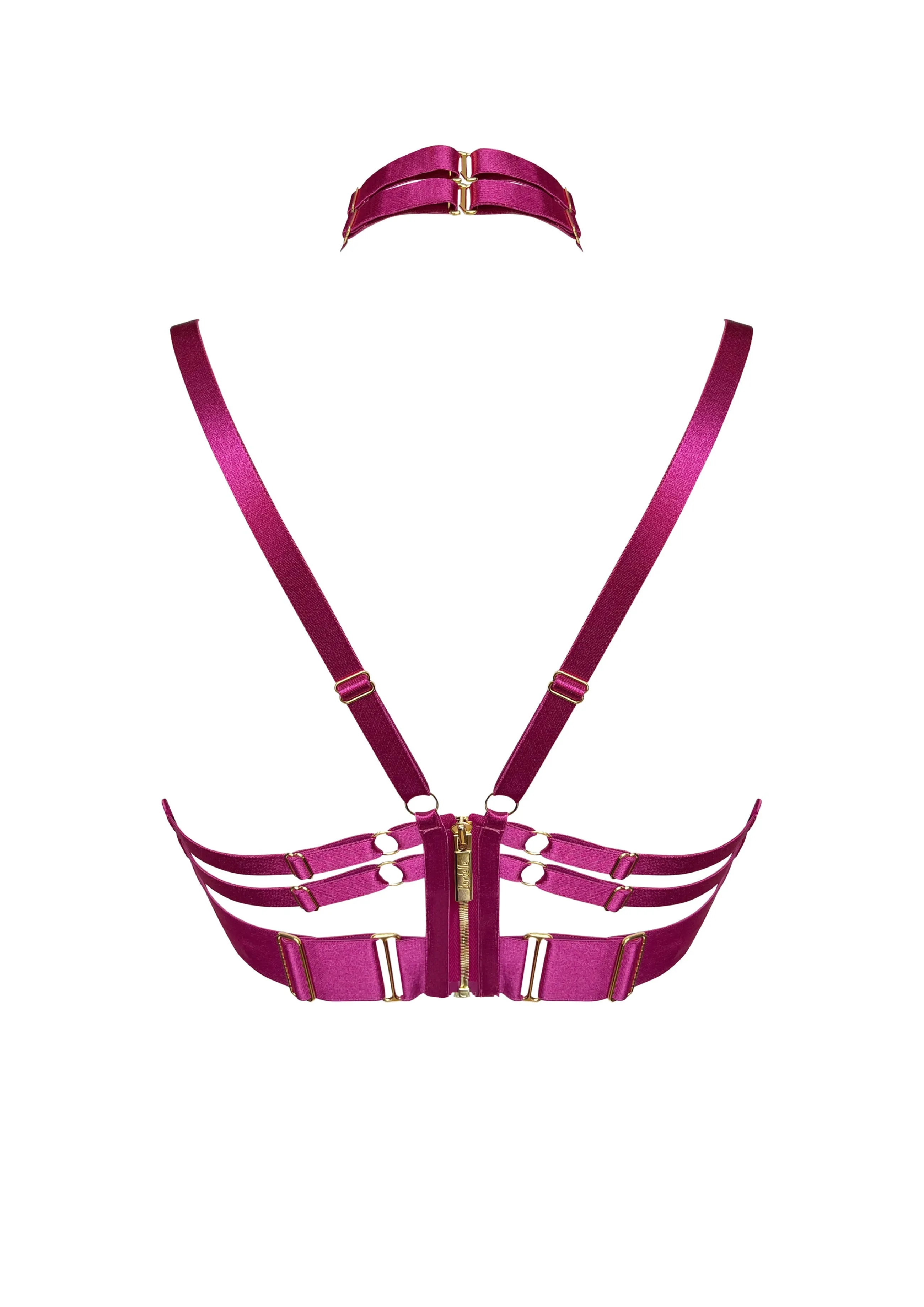 Dare to bare in this fully ouvert wired bra. Complete with embroidered tulle panels and collar detail, this cupless style is designed to be seen. Featuring fully adjustable back straps for a personalised fit, this style is finished at the back with a 24k gold plated zip fastening.