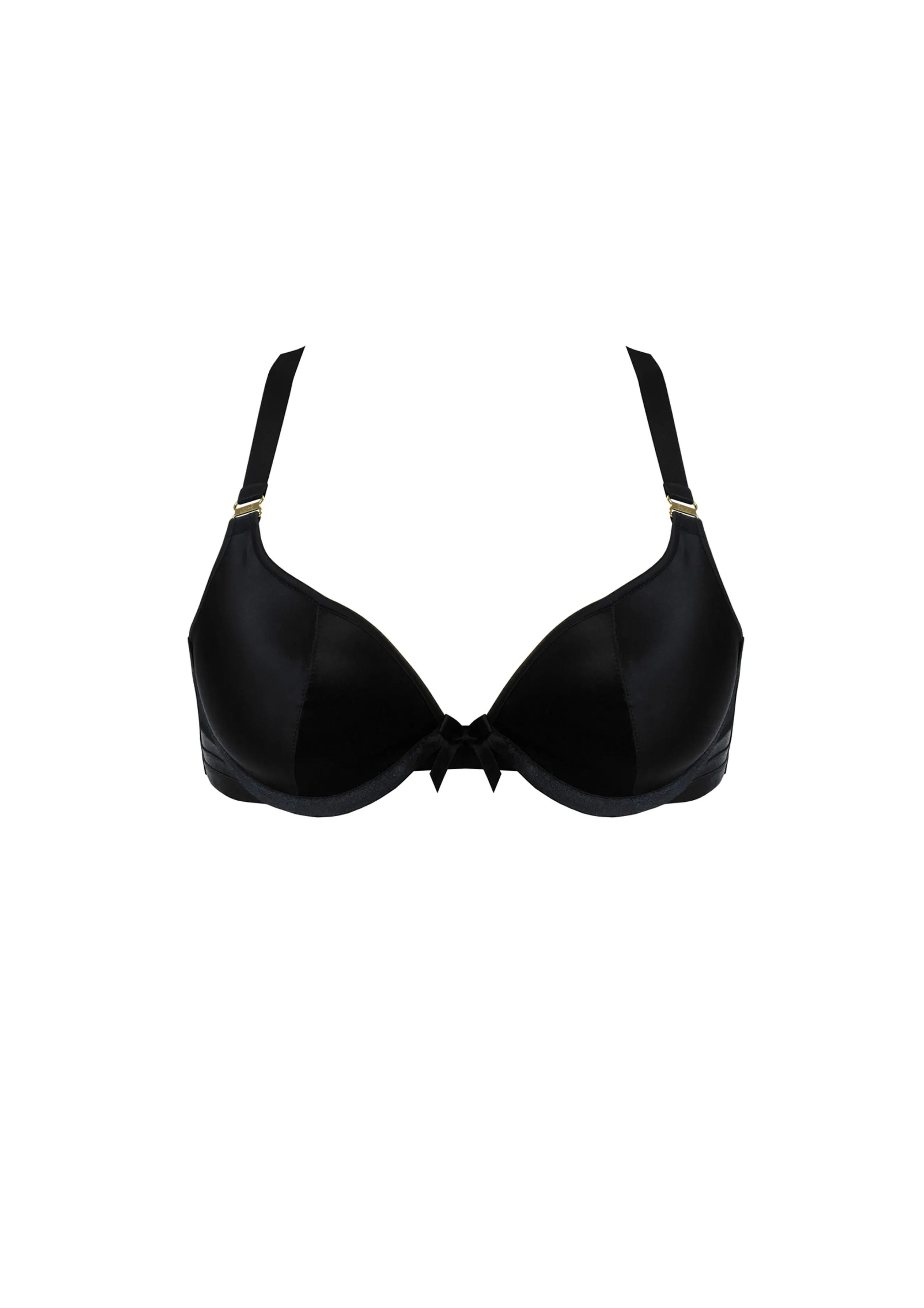 A classic push-up bra, reimagined. Featuring moulded cups covered in smooth silk satin and fully adjustable back straps secured with a hook & eye fastening at the centre back.
