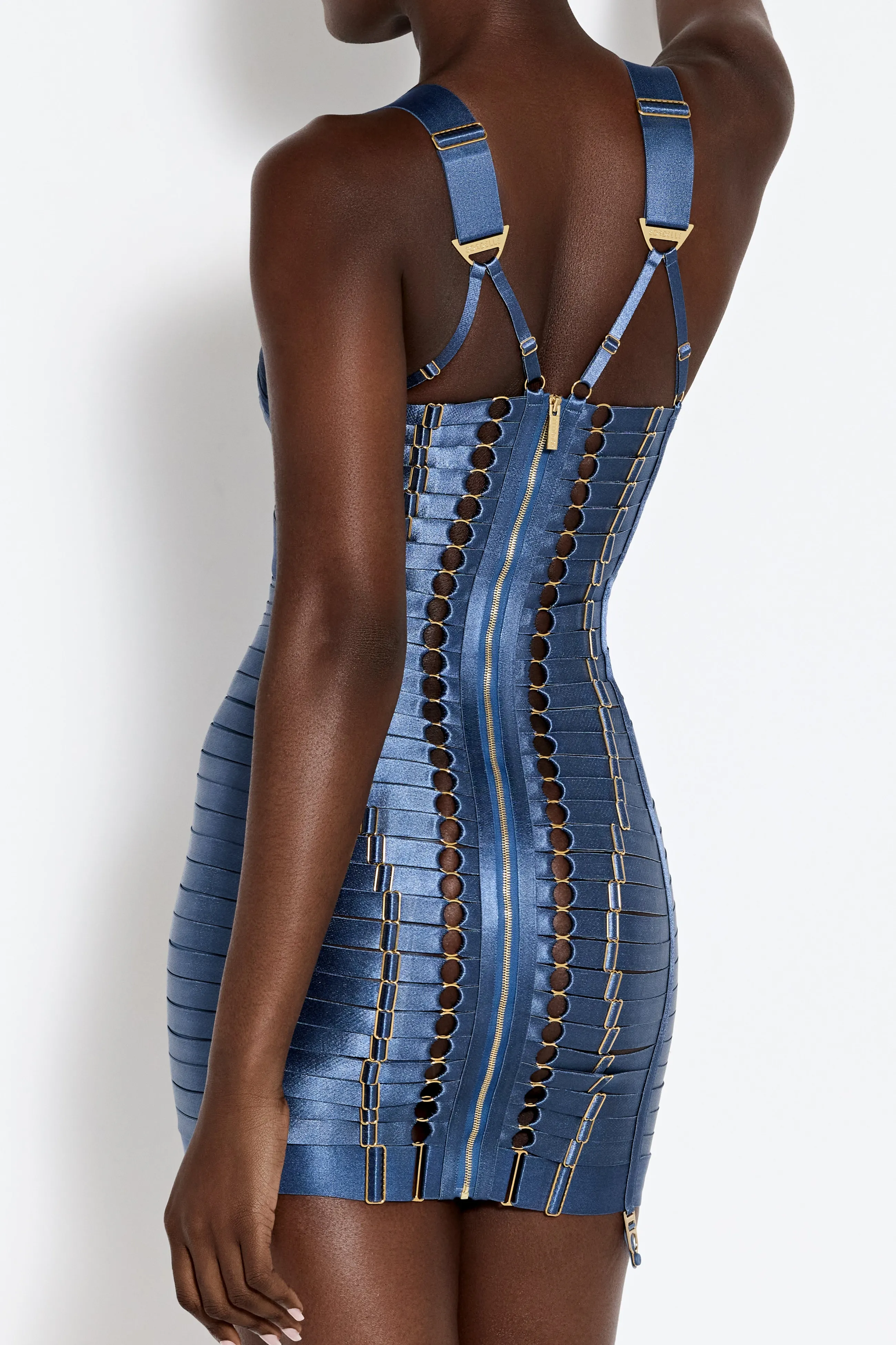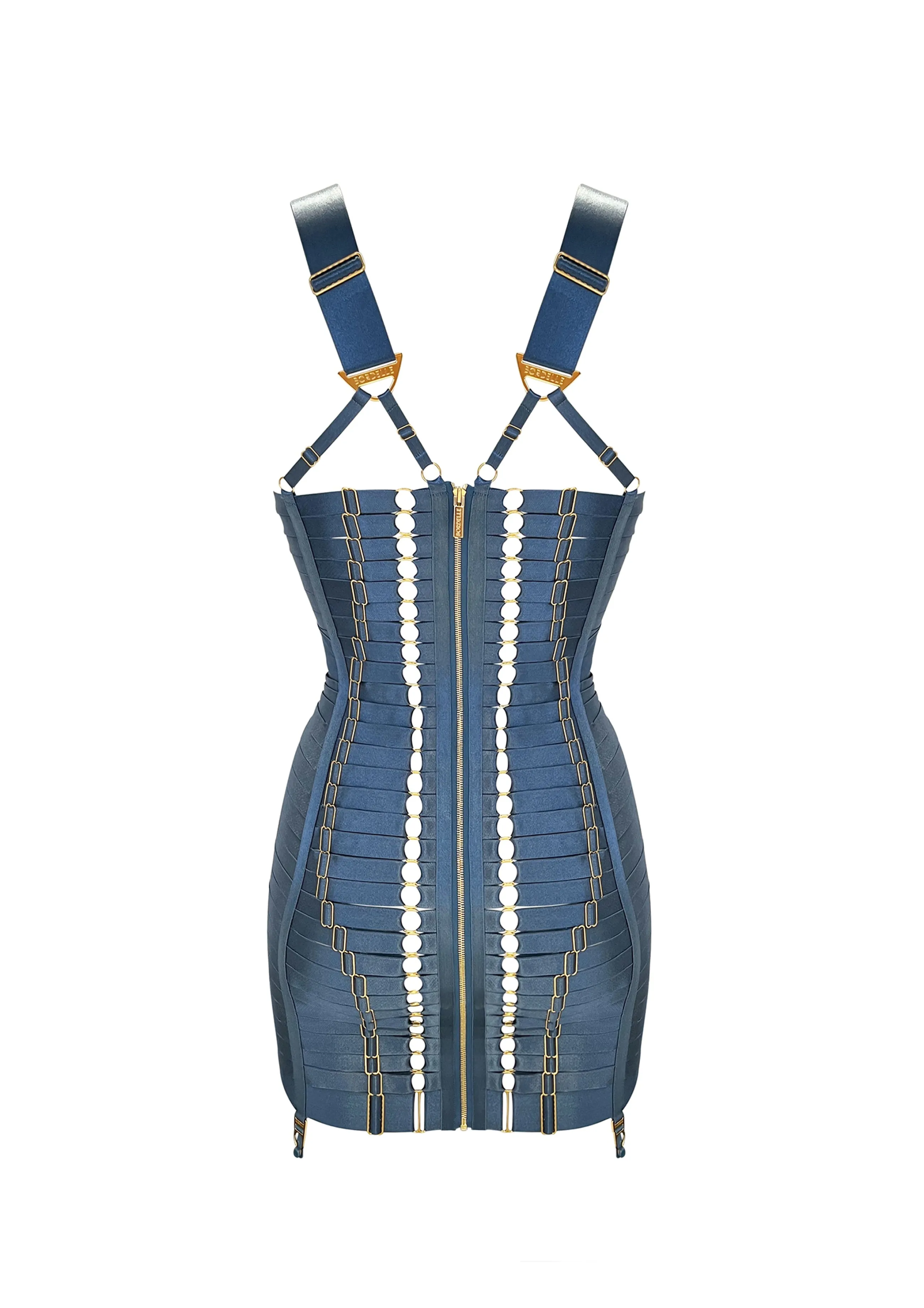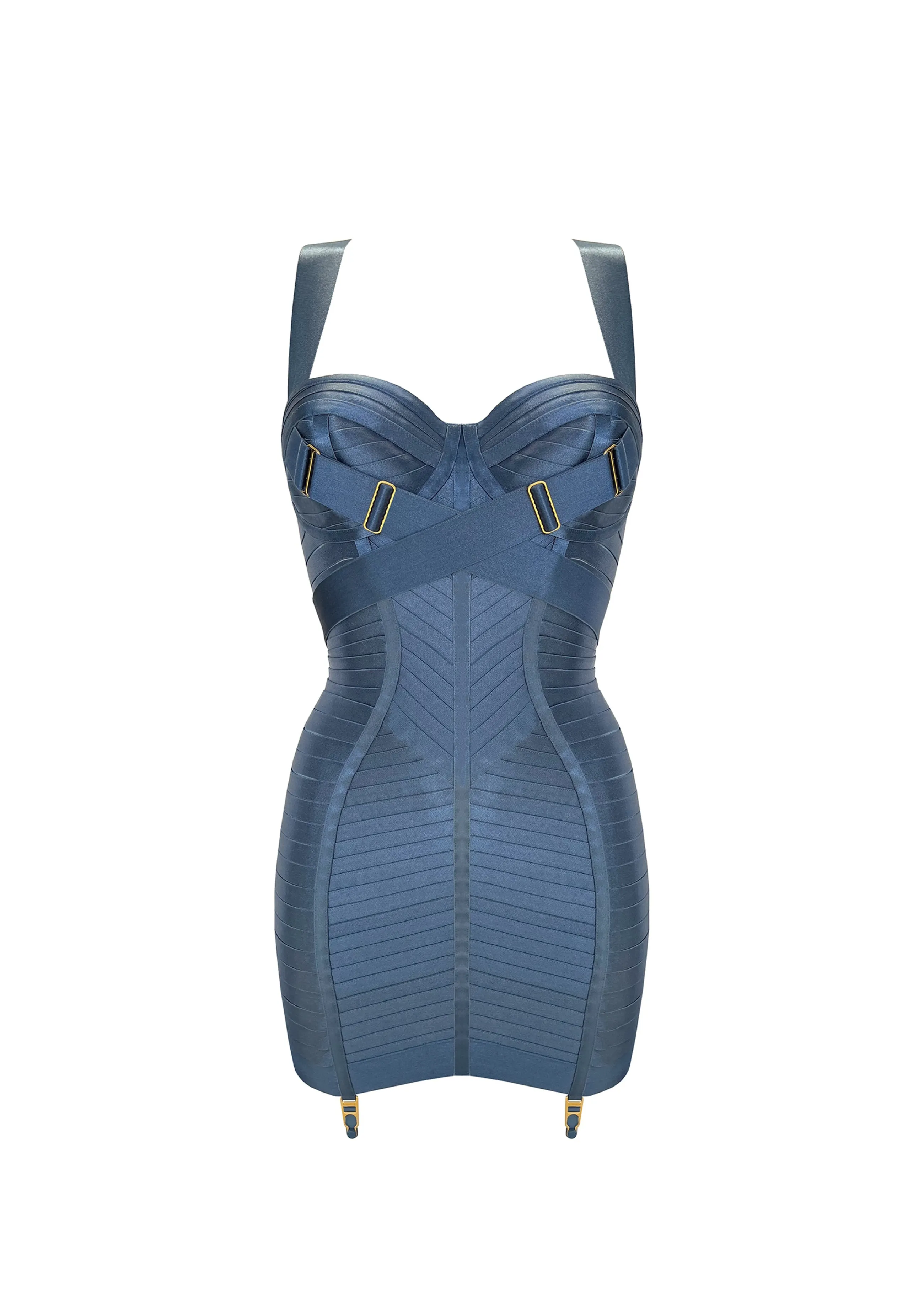 A show-stopping development of the iconic Bordelle underwired lingerie dress. Contouring satin elastic strapping is comb…