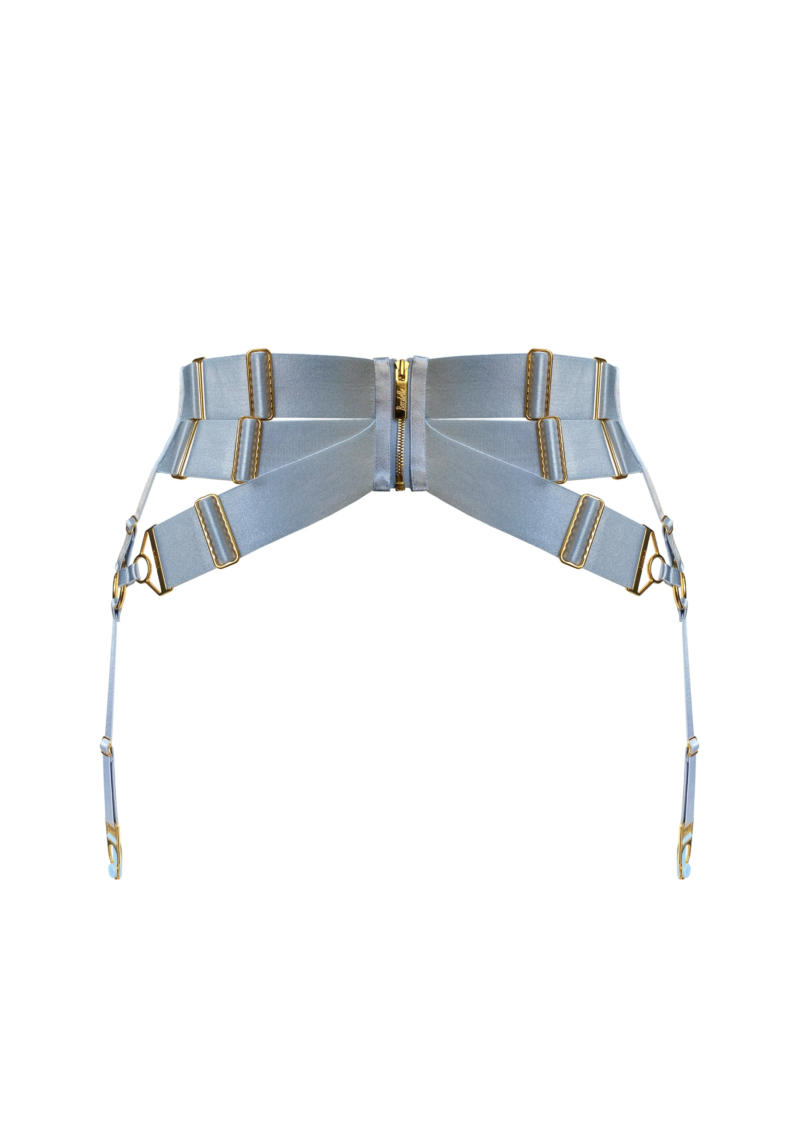 Curating a selection of popular styles, The Essentials Collection highlights our bondage-luxe aesthetic by bringing back pieces you know and love in exclusive colourways. The versatile Aurea Suspender features soft wide band straps that gently smooth and adjust over the waist via oversized 24k gold plated hardware. Wear with The Essentials Wide Strap Garters for a faultless match.