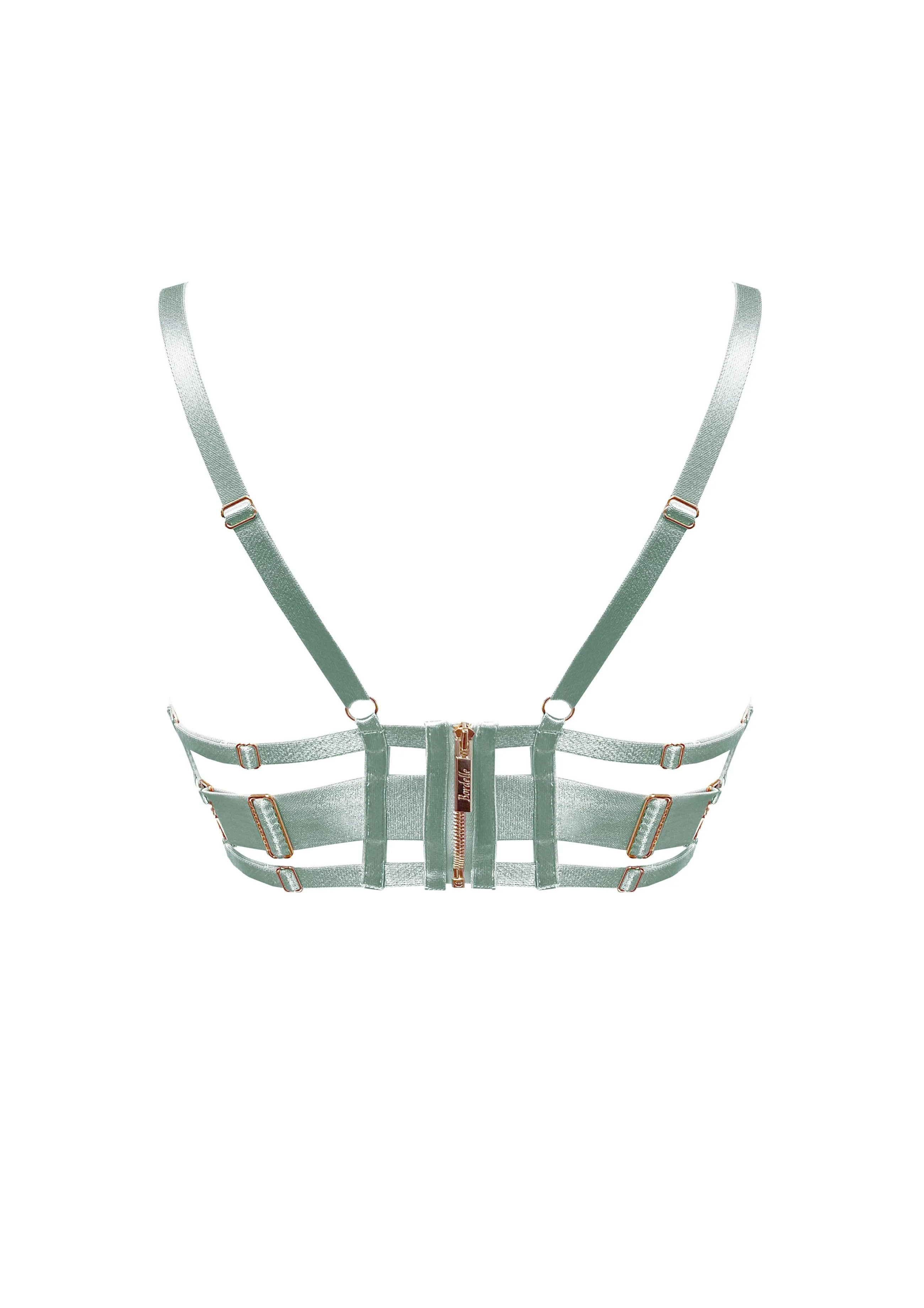 Curating a selection of popular styles, The Essentials Collection highlights our bondage-luxe aesthetic by bringing back pieces you know and love in exclusive colourways. Your next everyday staple, the Kora Balconette Wire Bra combines our soft wide band elastic with luxurious mesh to create the perfect style for comfort and support. Wear with The Essentials Kora Thong for an effortlessly wearable look.