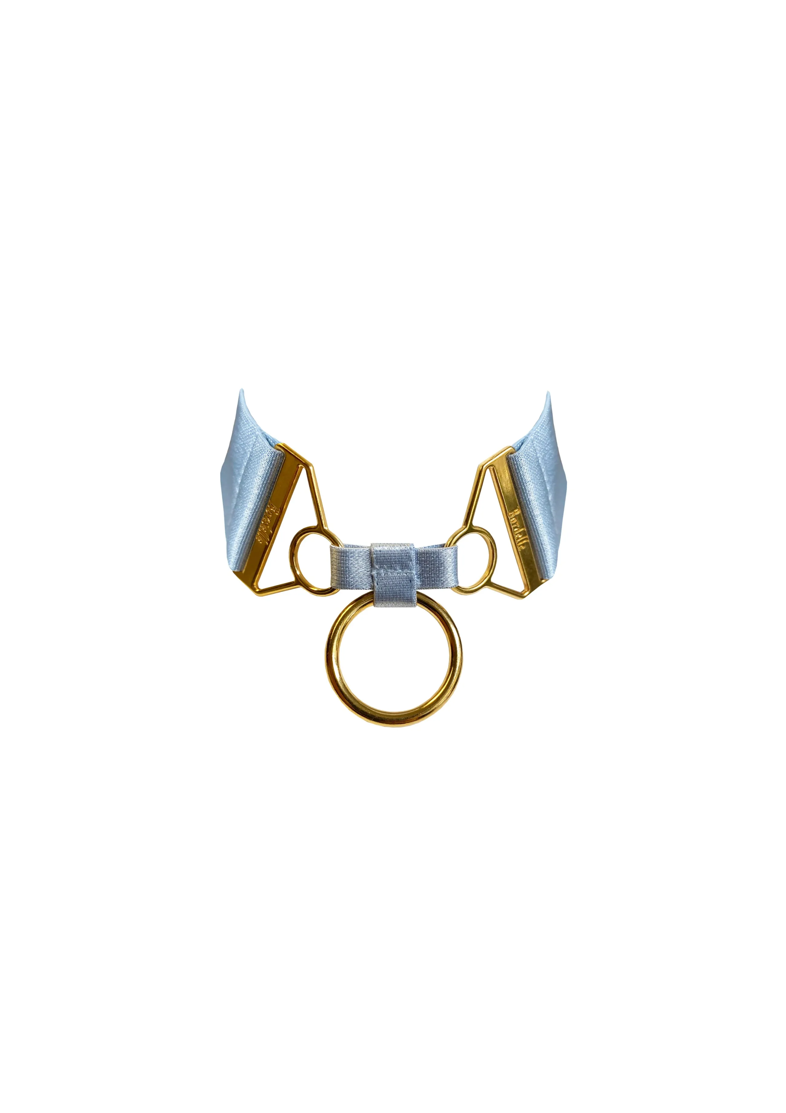Curating a selection of popular styles, The Essentials Collection highlights our bondage-luxe aesthetic by bringing back pieces you know and love in exclusive colourways. The Wide Strap Collar is handcrafted from fully adjustable soft wide band straps and finished with oversized 24k gold plated hardware and a statement ‘O’ ring, the perfect addition to any Bordelle look.
