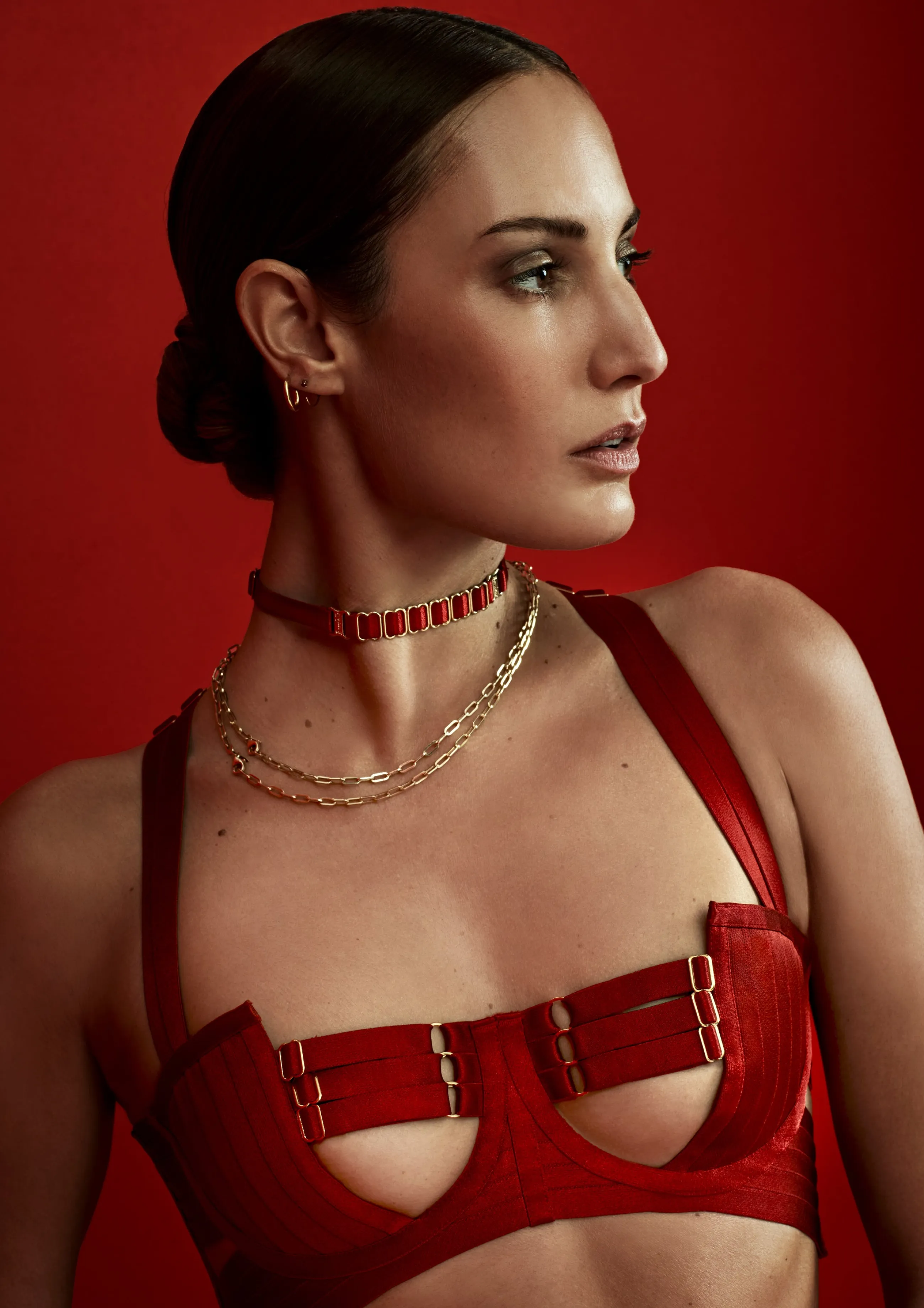 The sports-luxe Tomoe Bodice Bra is not for the faint hearted. The structured side cup offers support, while the adjusta…