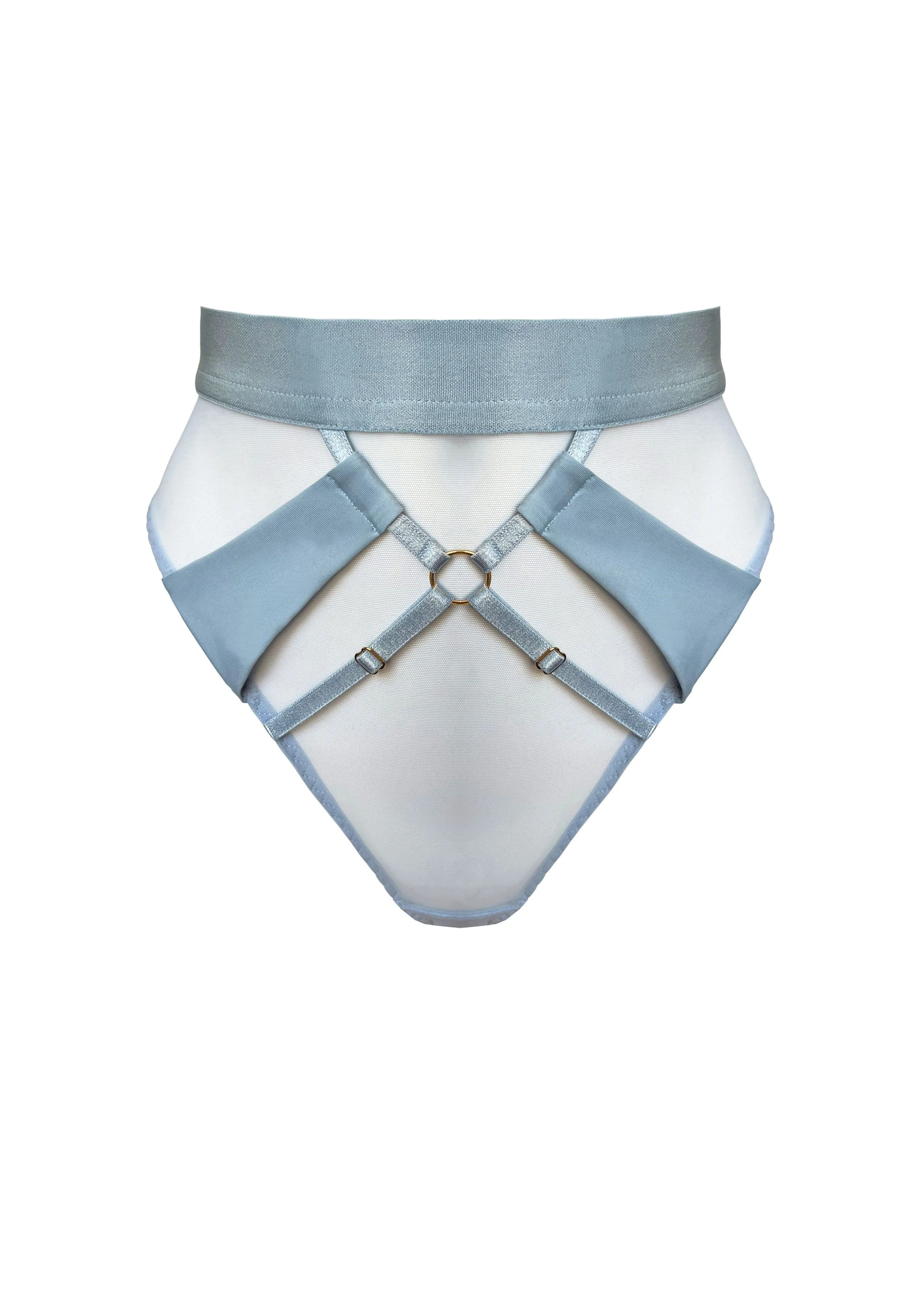 A luxuriously soft mesh high waist thong featuring satin elastic harness detailing and soft-sheen jersey panels. 24k go…